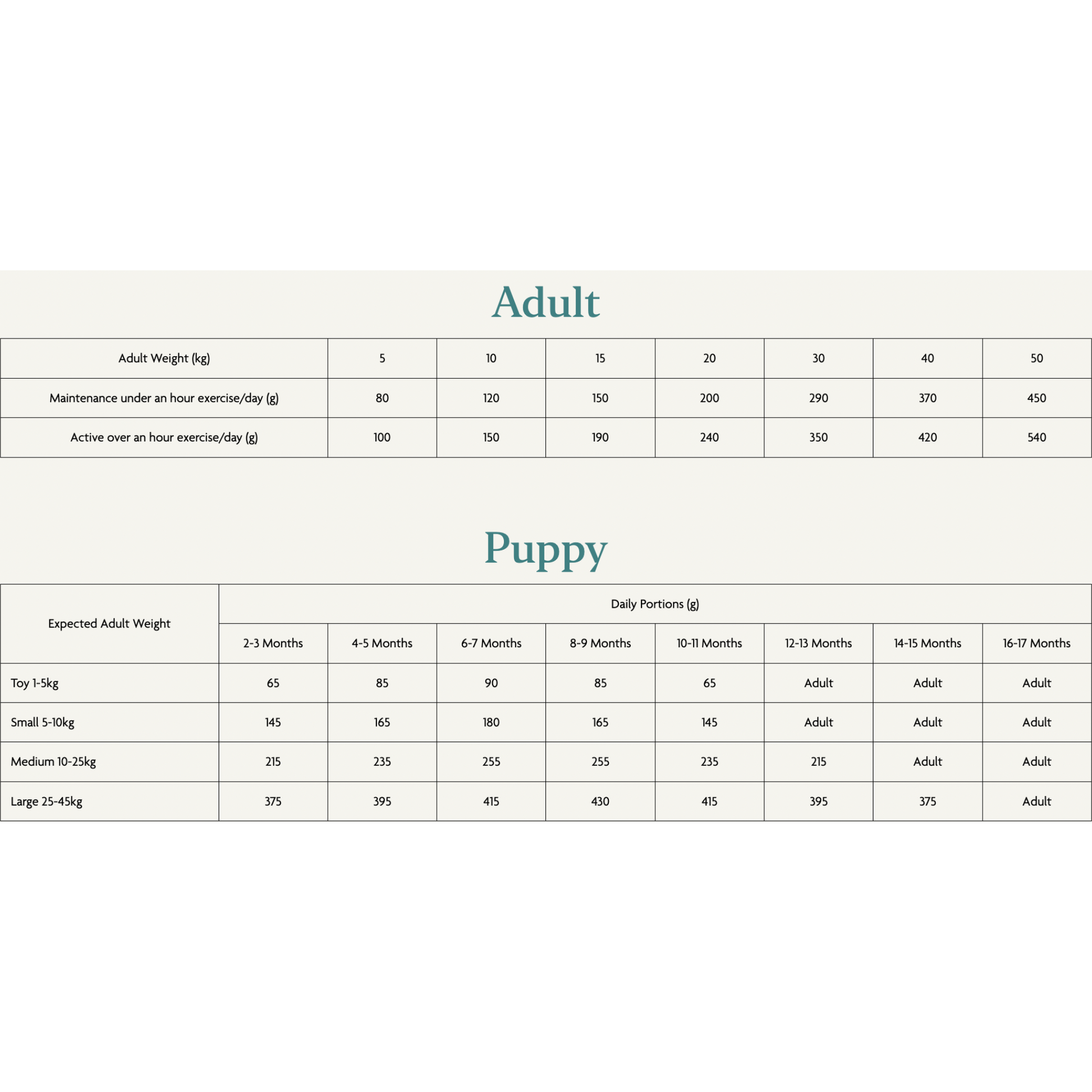 Introduce gradually over 5–7 days. Feed according to your dog’s weight, age and activity level. Ensure fresh drinking water is always available. Reduce other food intake if using this product as a topper or treat.