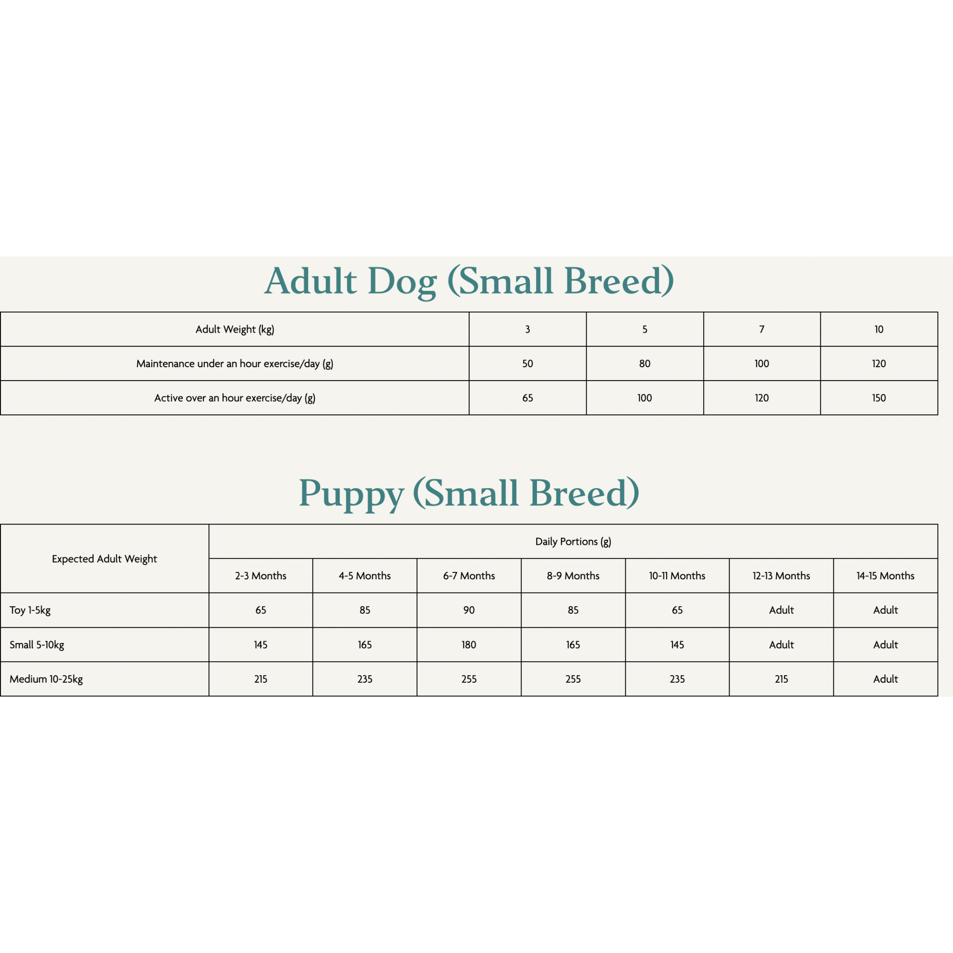 Crafted to match the ancestral canine diet, this recipe delivers the ideal ratio of high-quality meat to vegetables and botanicals, supporting natural balance and optimal wellbeing in small breed dogs.