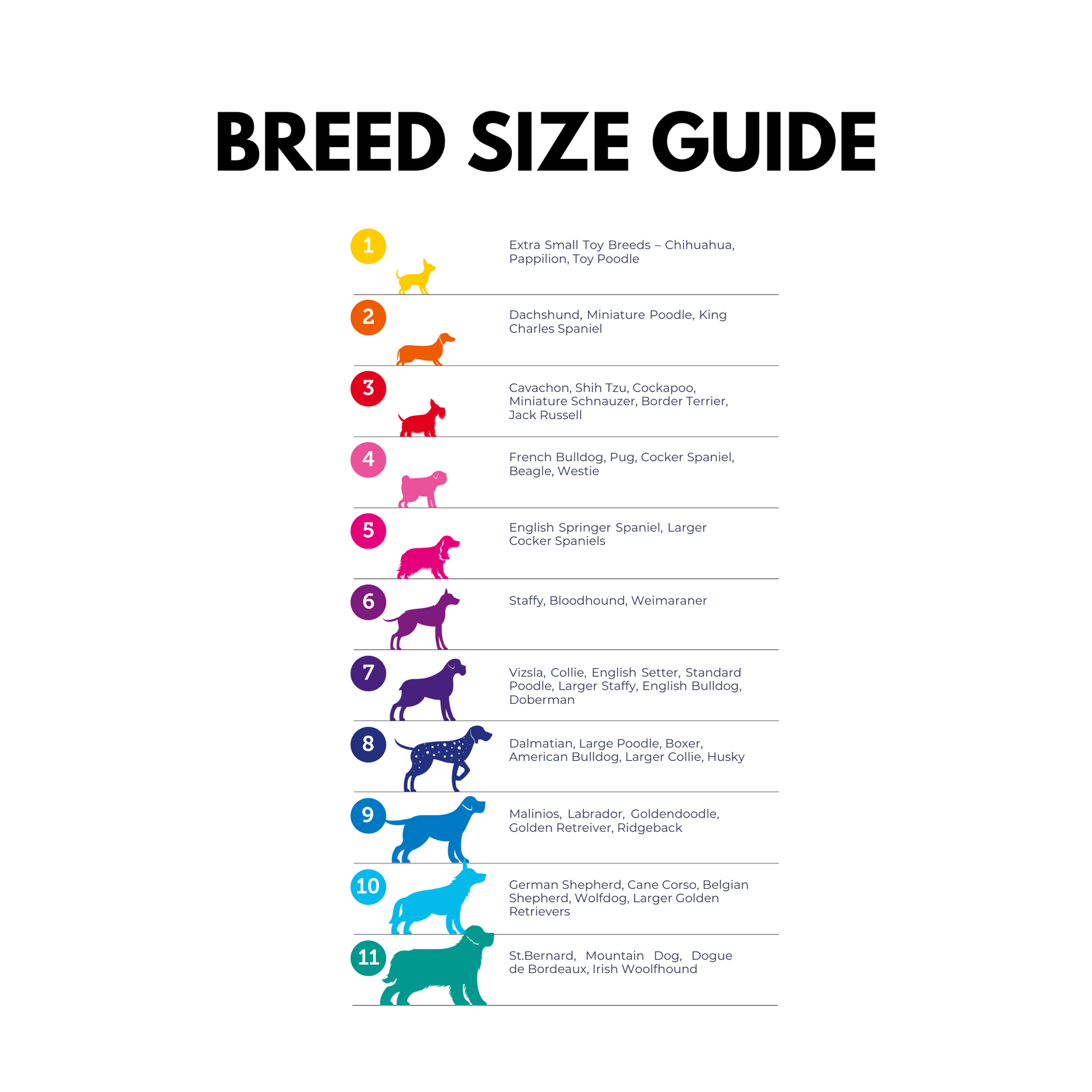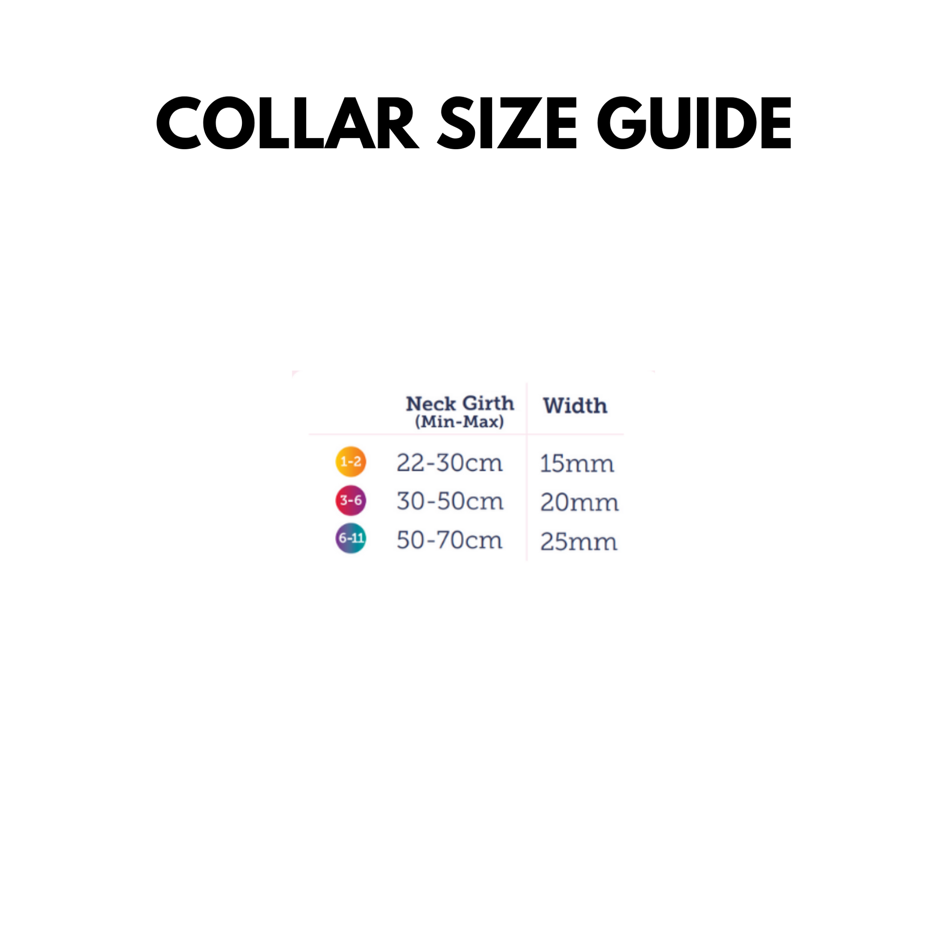 Doodlebone dog collars are available in 7 colours and 3 sizes.