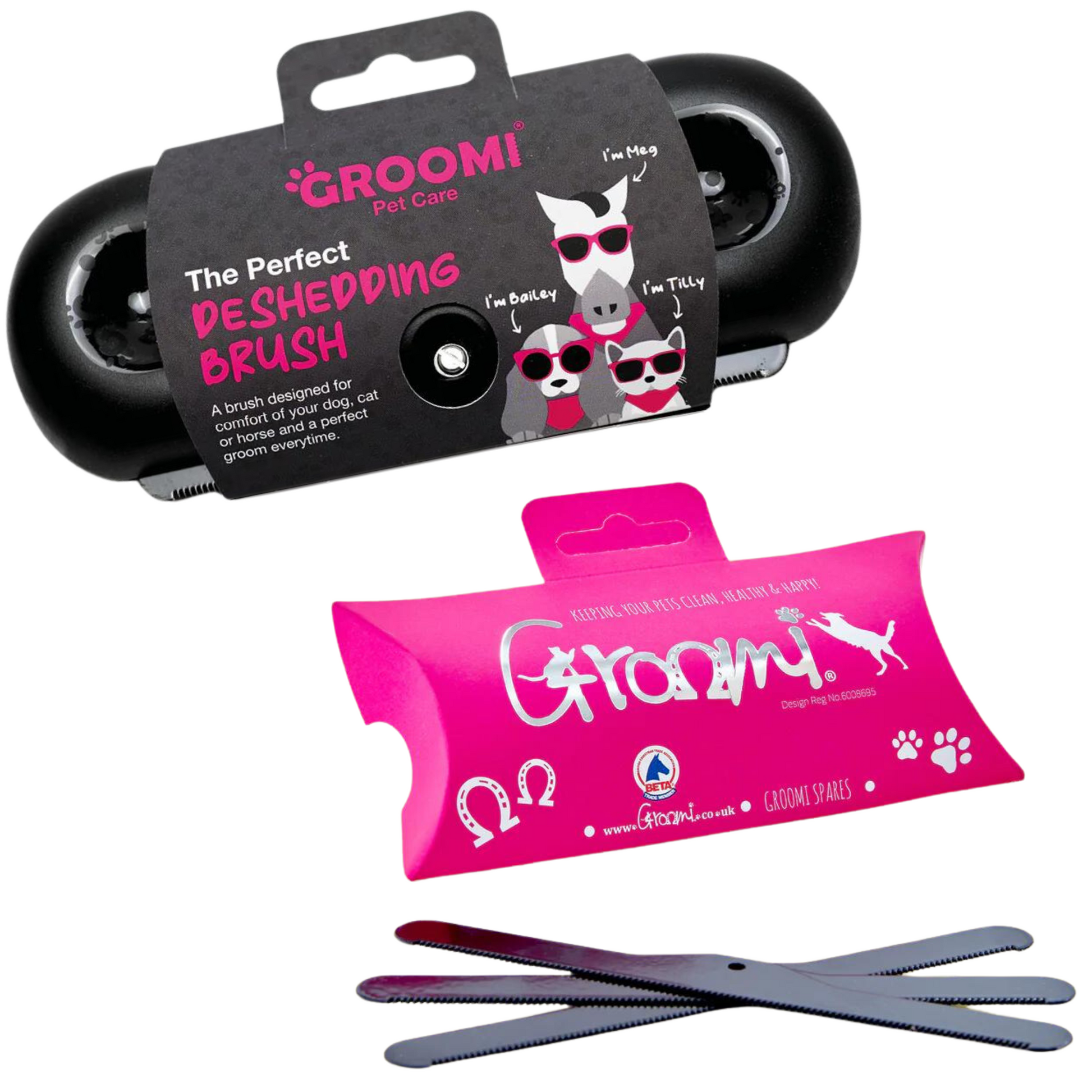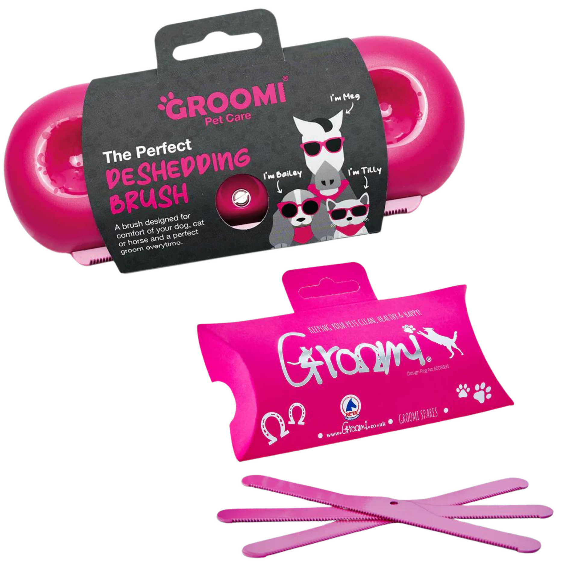 Suitable for dogs, cats, horses and other furry friends! The Groomi is designed to remove dead hair, dirt and other nasties from your pets coat with total ease and complete comfort.